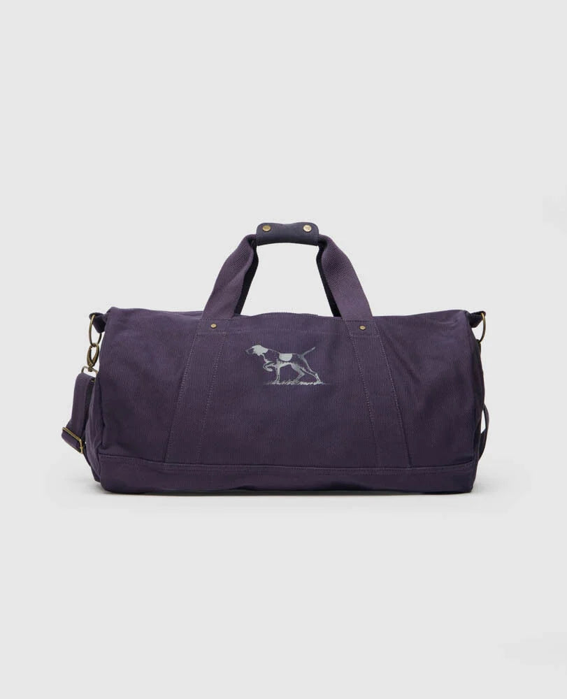 Our Ponsonby Road Duffle is crafted from heavy weight canvas, features an external pouch pocket between the angled handles on the outer side with a tonal printed Pointer logo, suede handle wrap, and a Rodd & Gunn embossed suede patch. A large zipper opening allows easy entry into the circa 43 litre capacity interior, that includes a zipped pouch for storing valuables. The outer is trimmed with antiqued and/or colour coded hardware.
