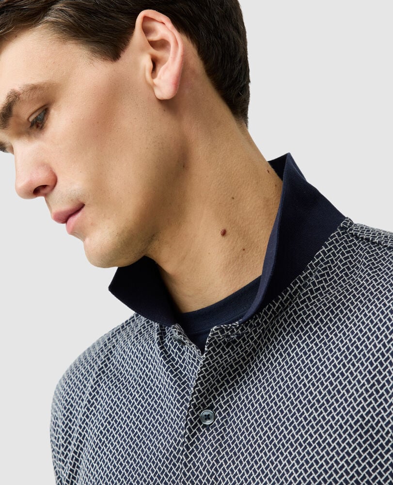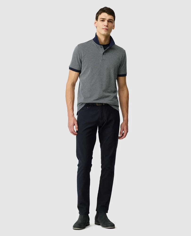 This refined polo's subtle jacquard design and soft-touch mercerised finish lends this fabric a premium feel. Crafted from soft cotton and finished with a heavy garment wash for comfort.
