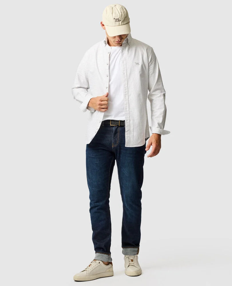 Rodd and Gunn Check Oxford 5 Sports Fit Shirt - Pebble